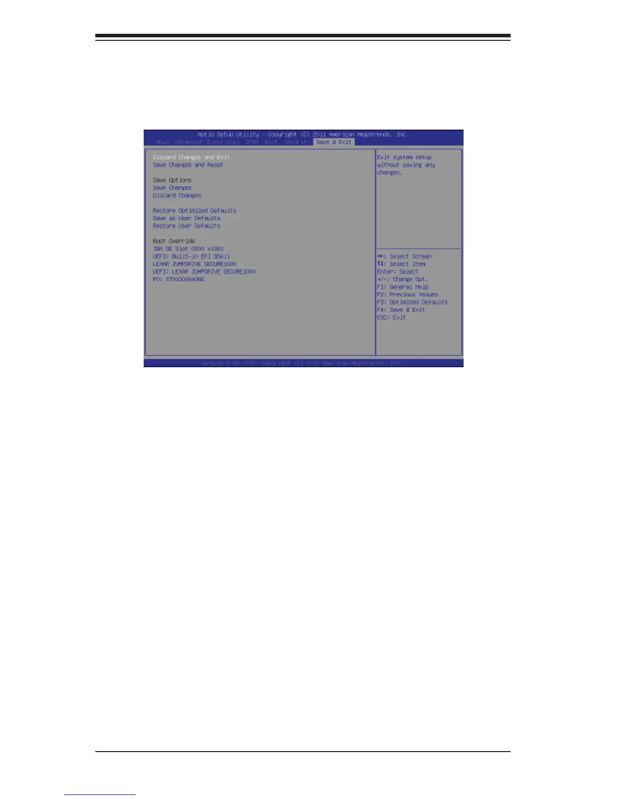 This submenu allows the user to confi gure the Save and Exit settings for the