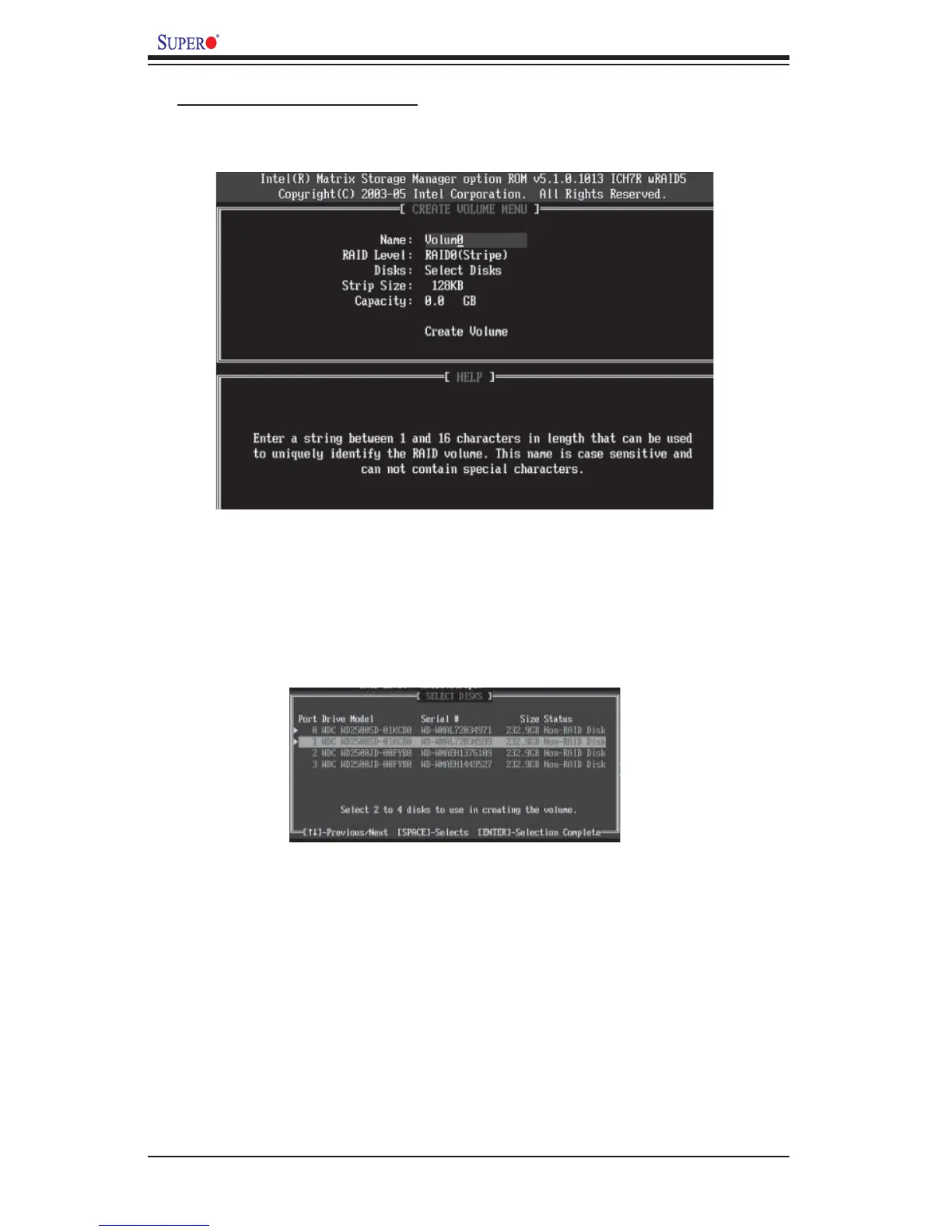 Creating a RAID 0 Volume: