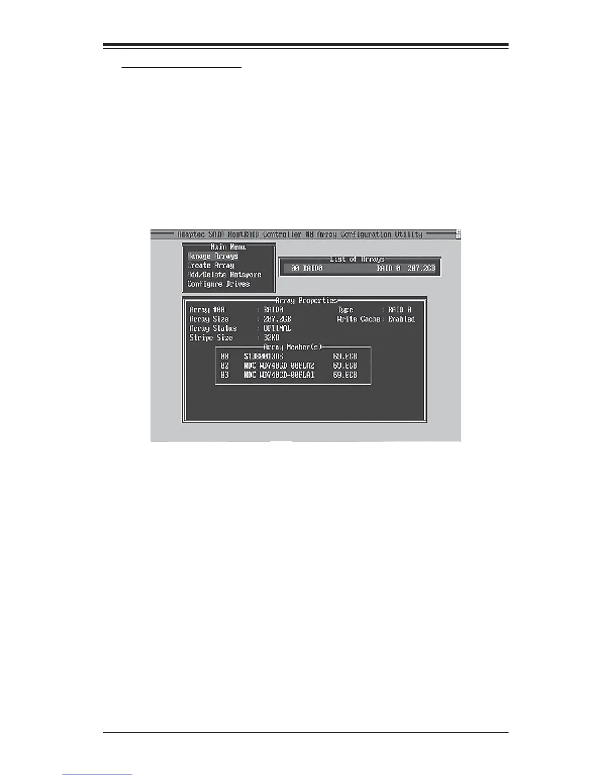 1. From the main menu, select Manage Arrays and hit <Enter> (as shown on the