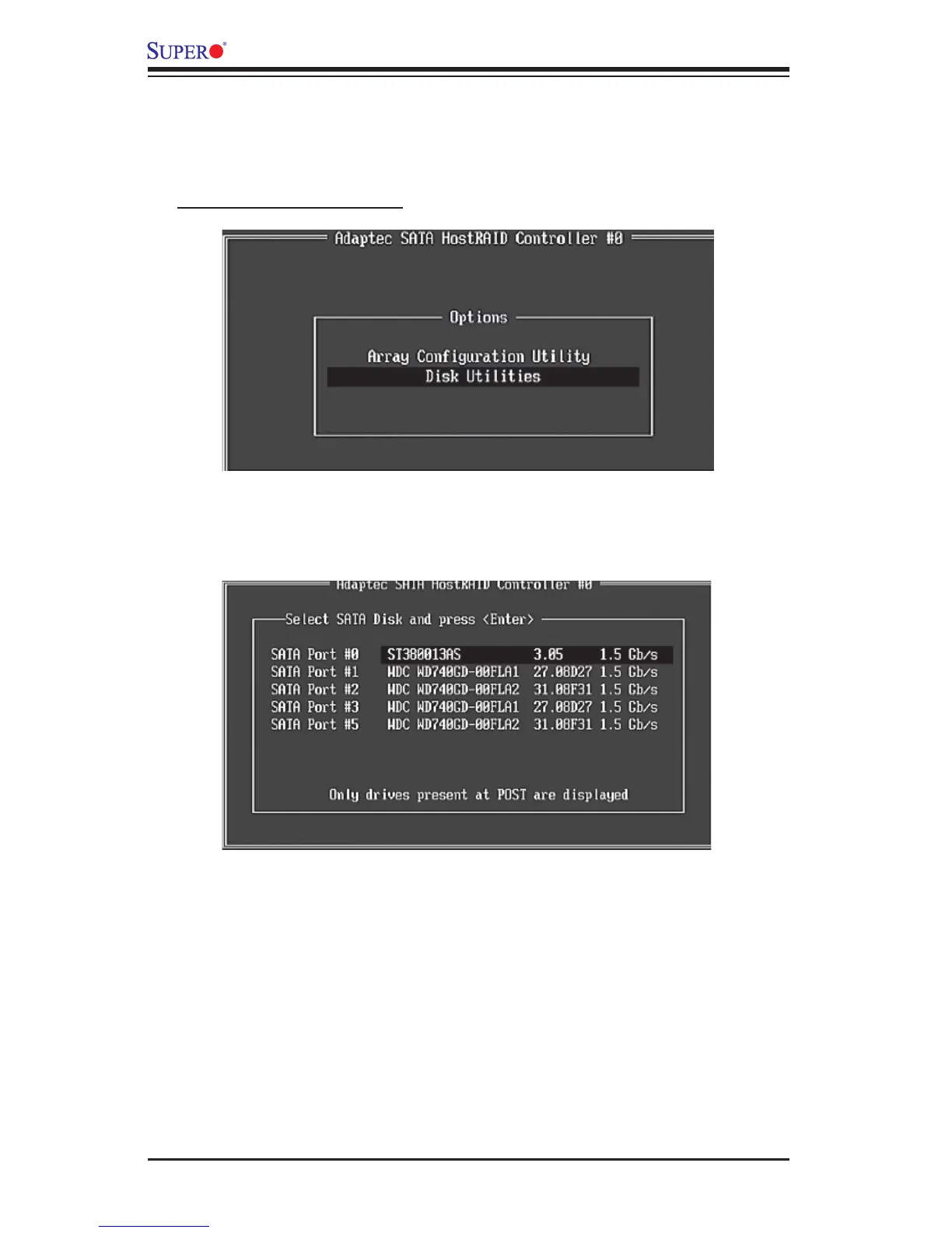 1. From the Adaptec RAID Confi guration Utility Menu, select Disk Utilities (as