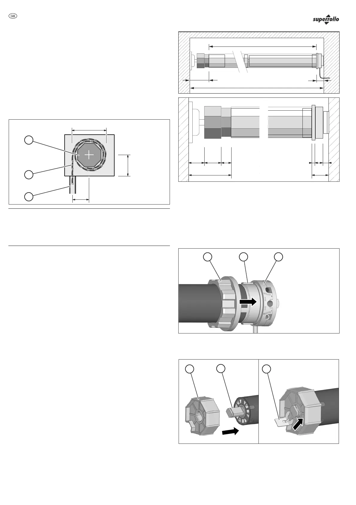 ¾ 1. Slide the driver (1) up to the limit stop onto the tubular motor's axle pin (2).