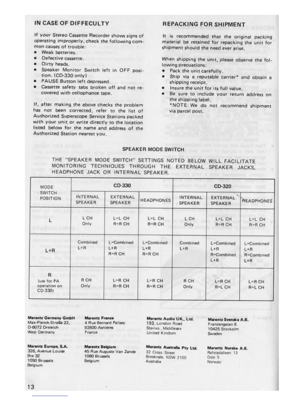 Superscope CD-330 - IN CASE OF DIFFECULTY