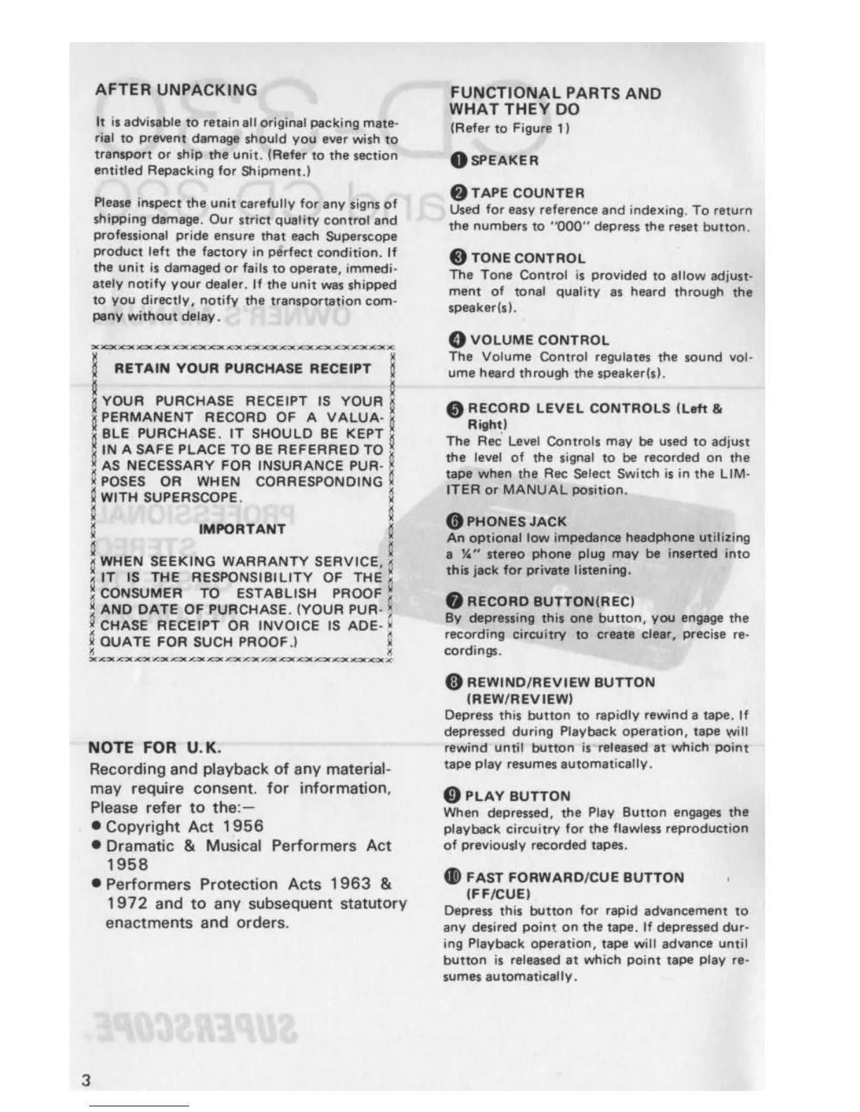Superscope CD-330 - FUNCTIONAL PARTS AND WHAT THEY DO