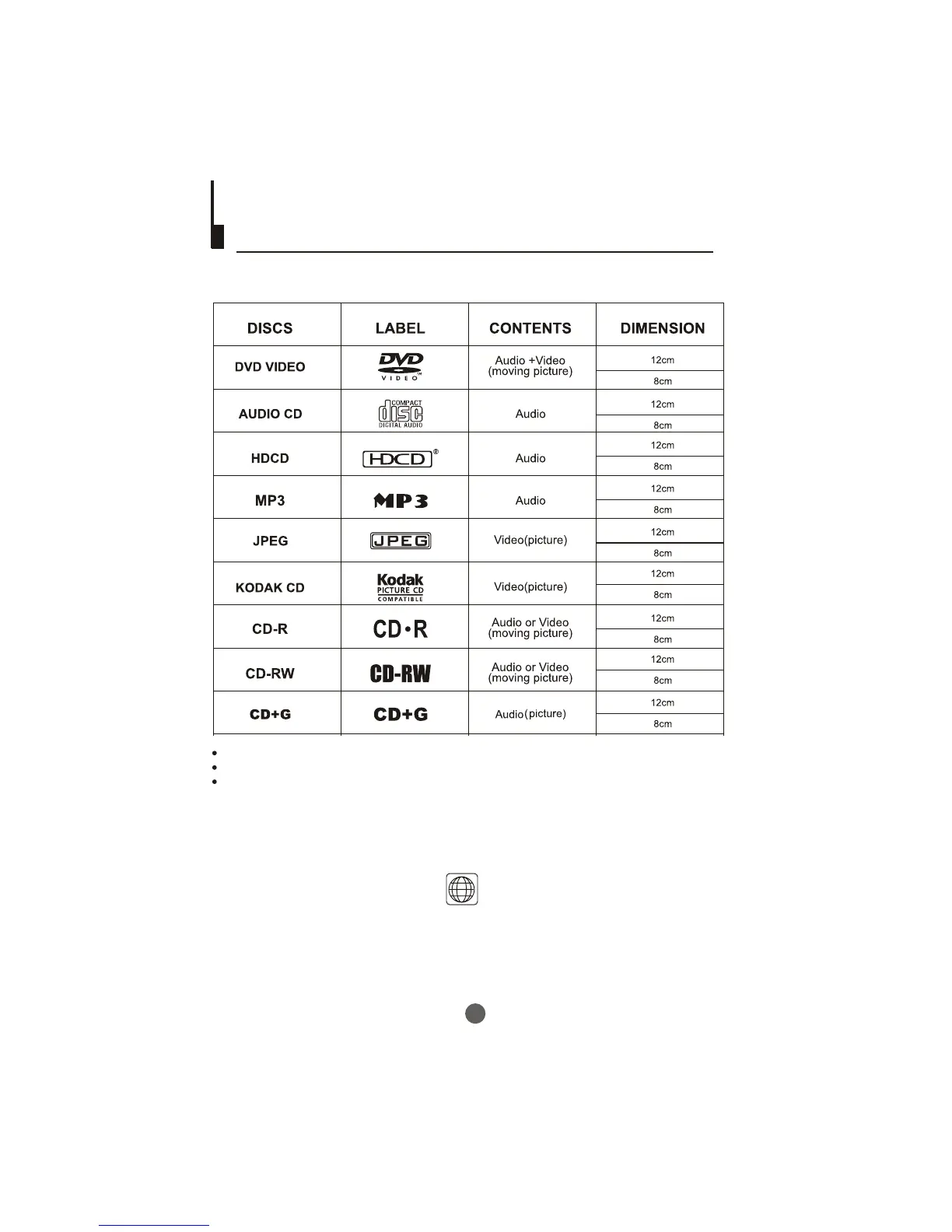 The following discs can be played: