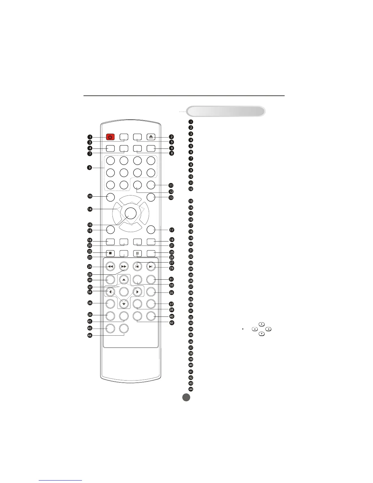 Buttons on the remote control