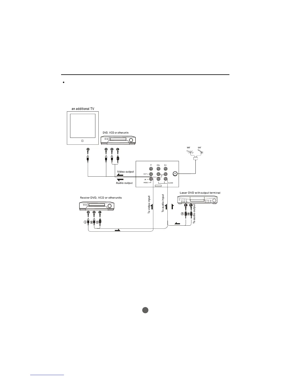 You can connect the DVD,VCR and stereo system to the output to enjoy a