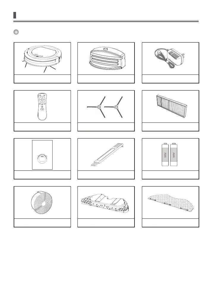 12) Mop x2 (Optional)10) Virtual wall(Optional) 11) Water tank (Optional)