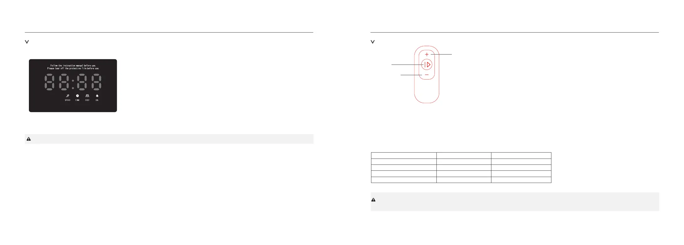 The current speed value is displayed in the running state, and the speed is on. The display range is 0.6-3.8 mph.