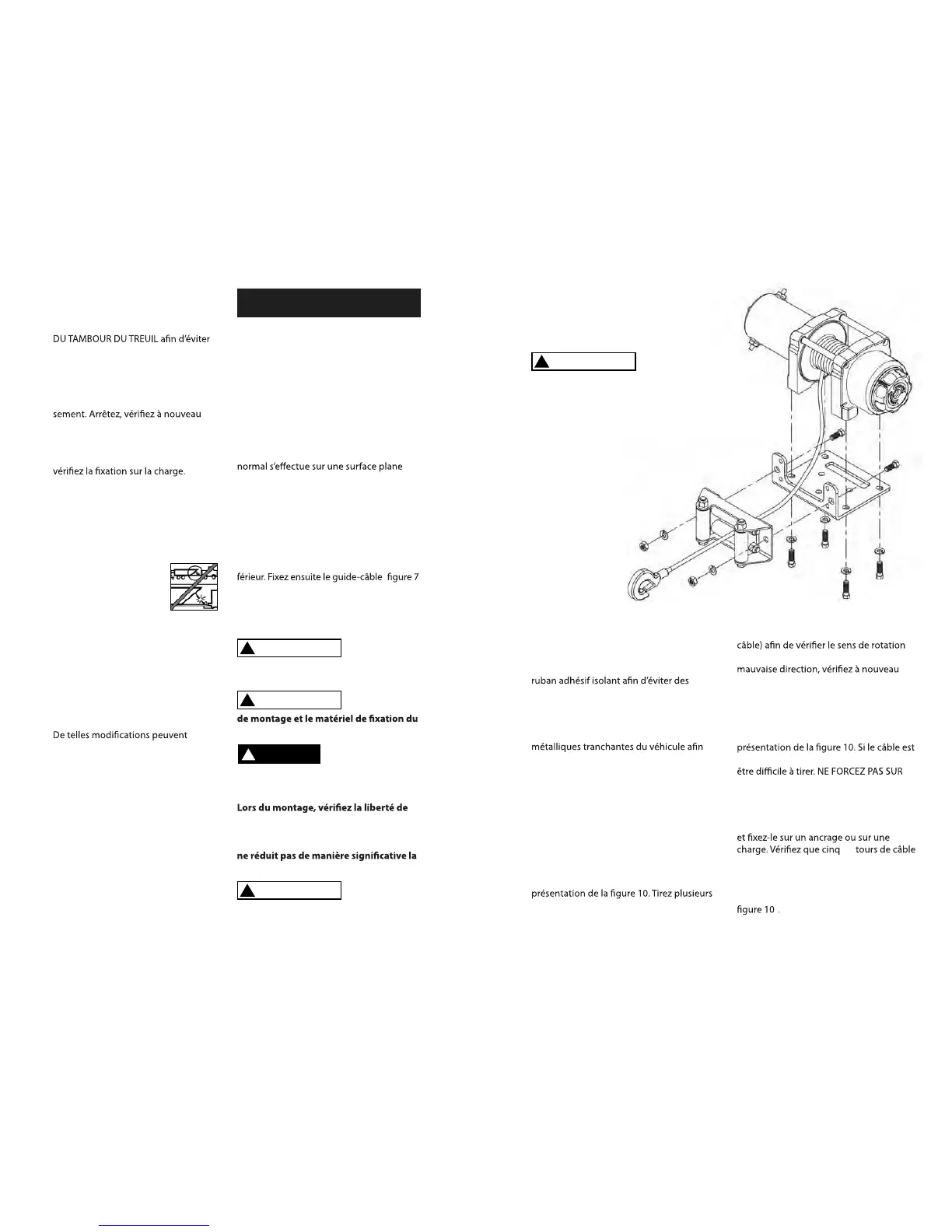 cule et des pièces du treuil. Assurez-vous