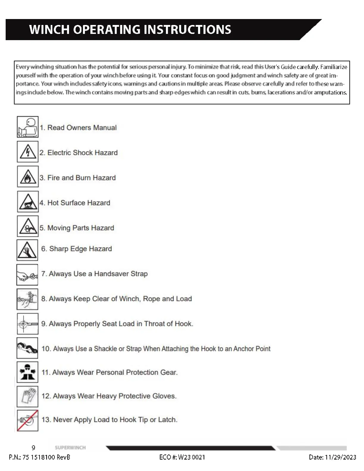 Superwinch TIGER SHARK - Winch Operating Instructions