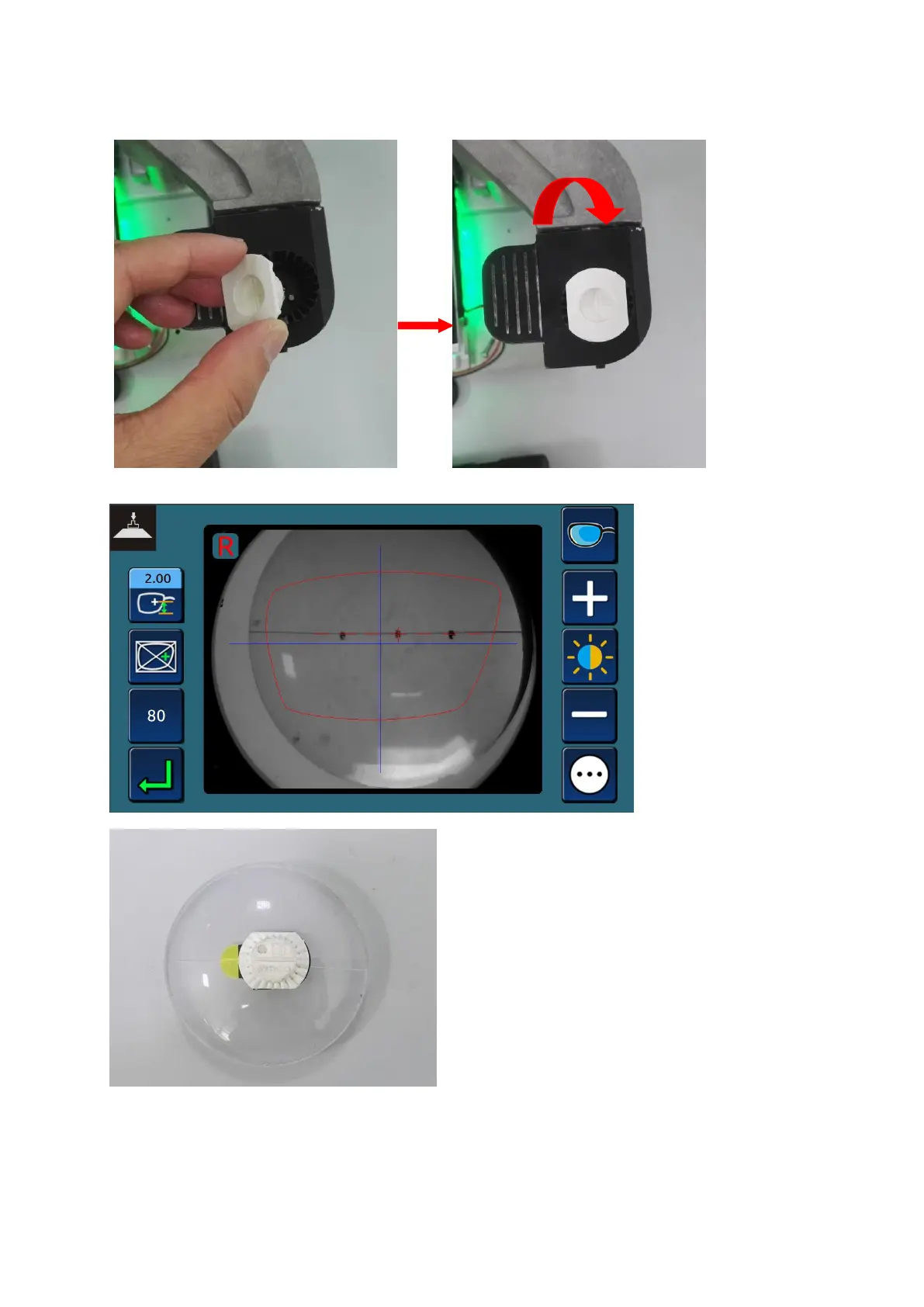 > Choosing geometry or optical center mode, rotate the arm, press the suction cup.