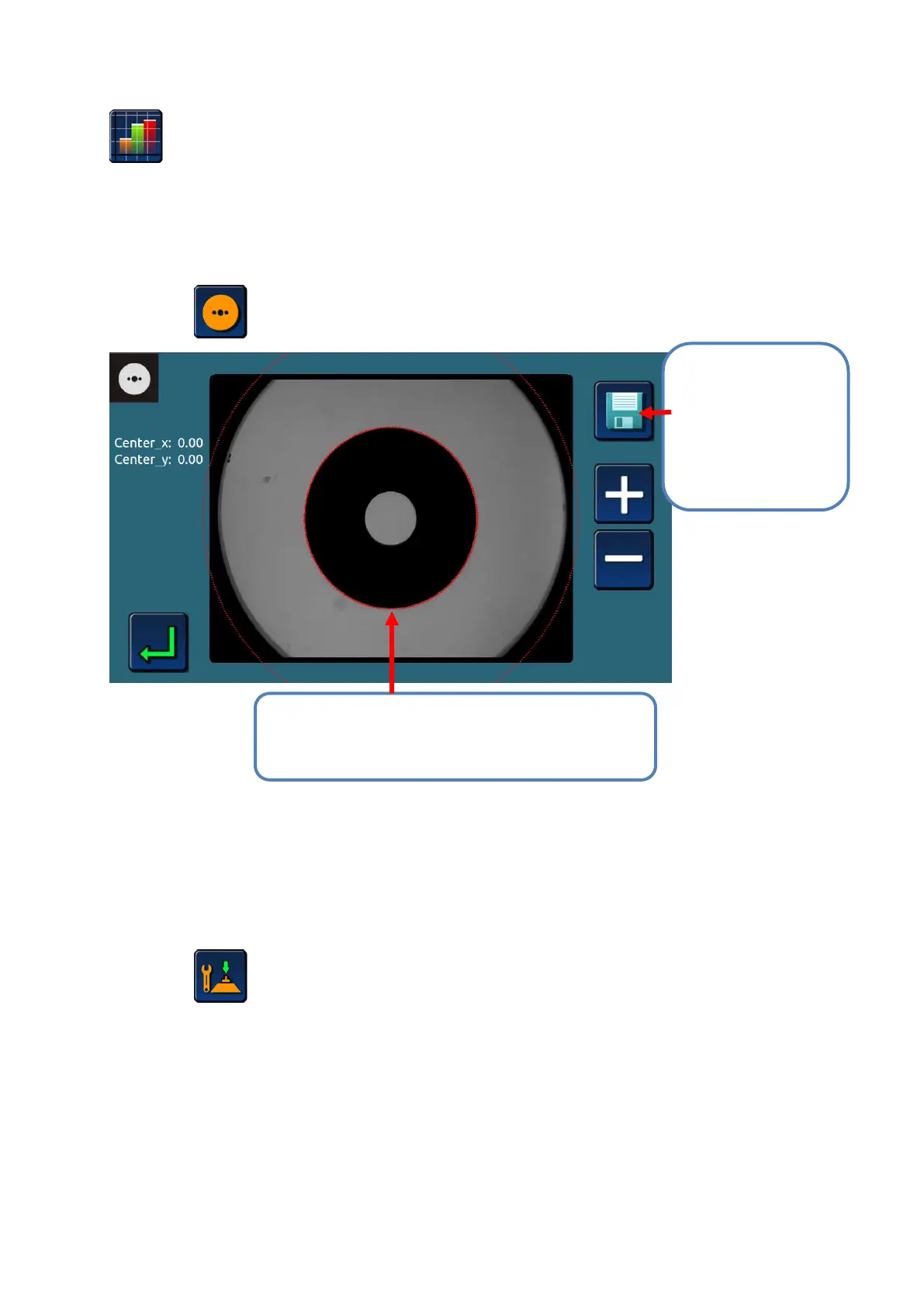 #1 Move the calibration plate, press + - icon,