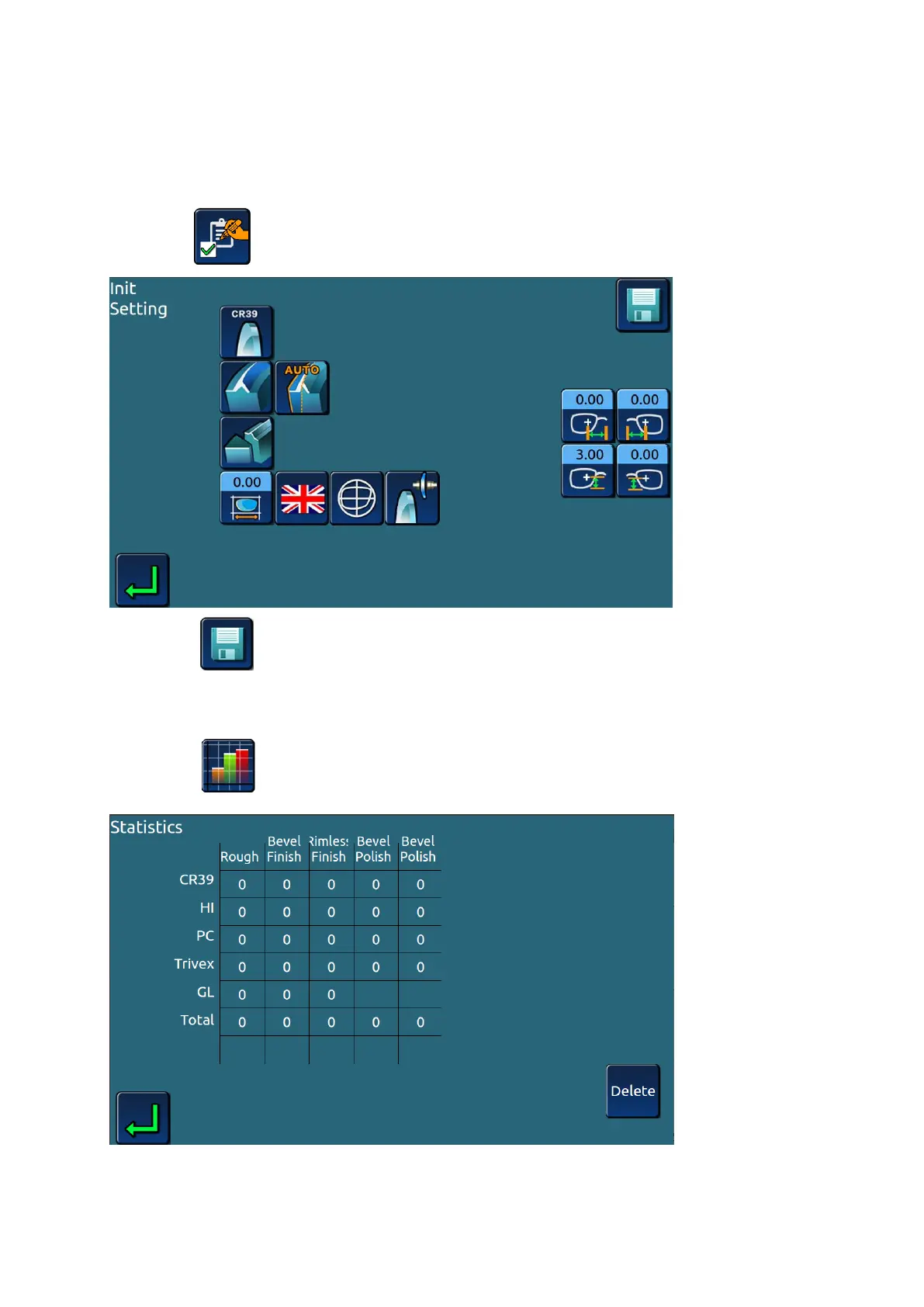 >Press icon after setting, saving initial parameter setting.