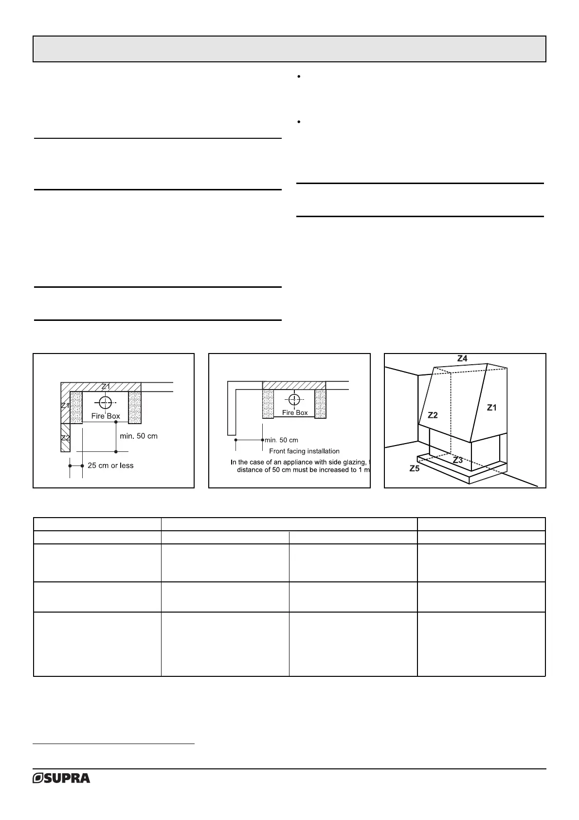 and ceilings where the fireplace is to be located (Z1, Z2, Z3, Z4, Z5) taking