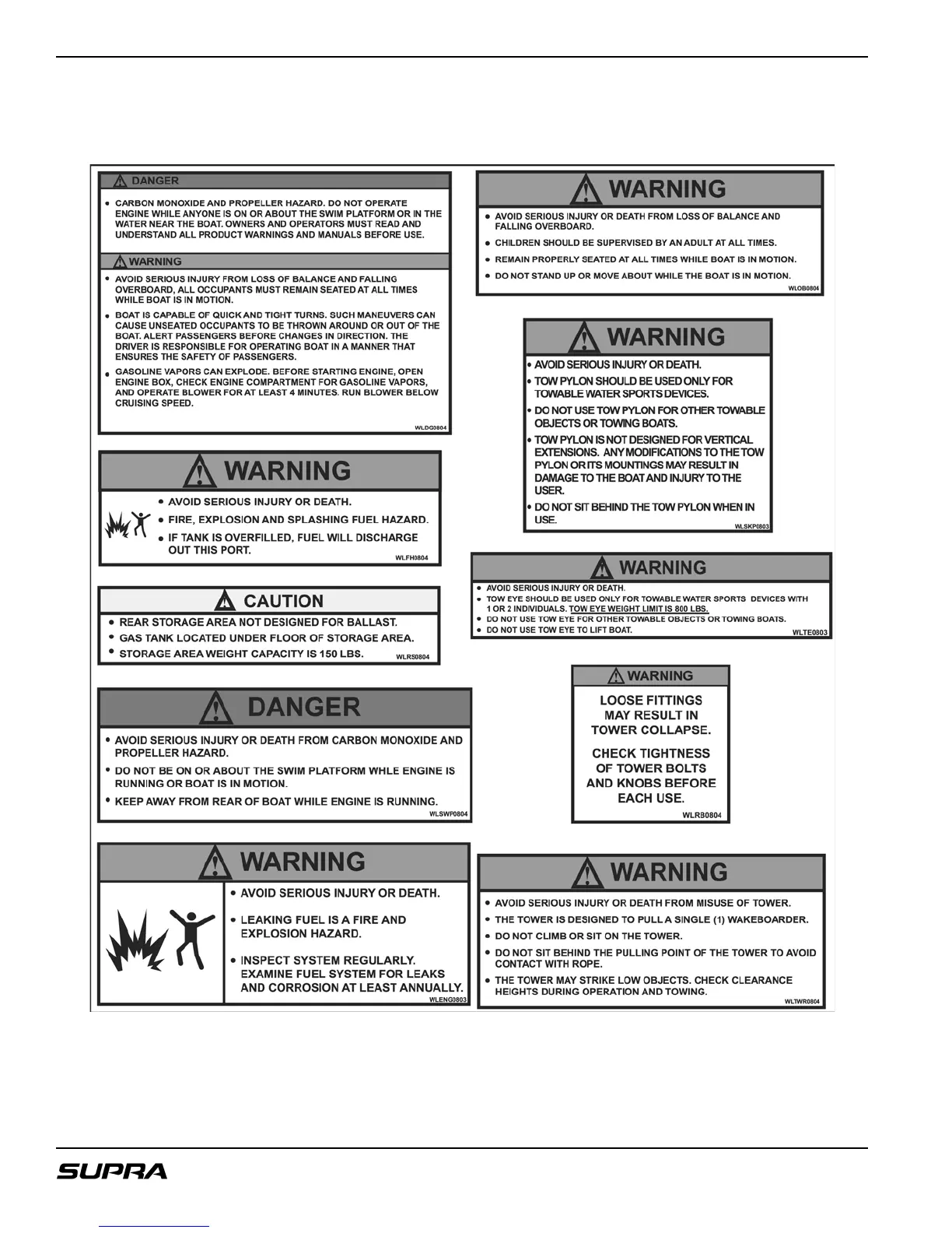 If your warning decals should become damaged in any way, please contact your Supra Dealer or write to Skier’s Choice, Inc.,