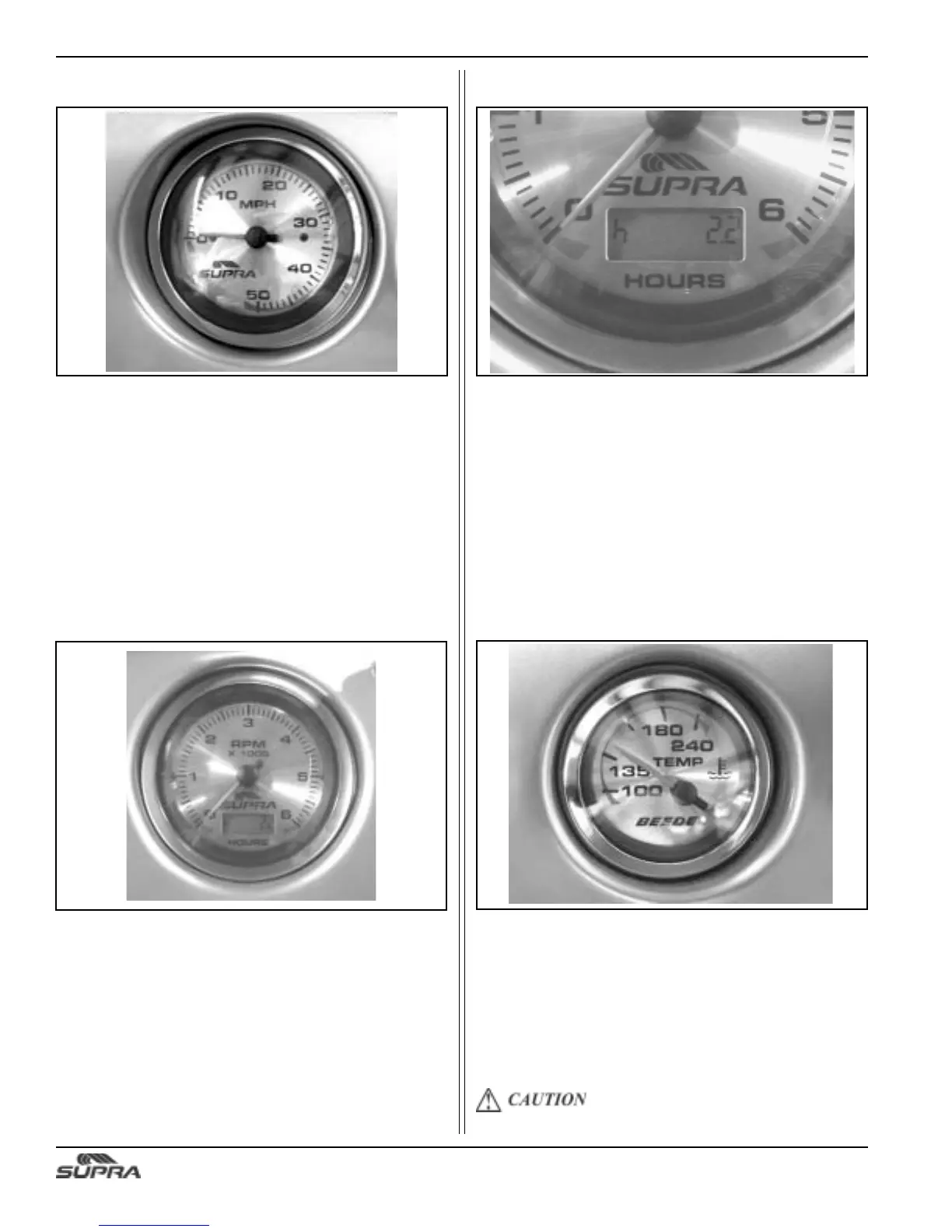 Engine Hours are shown on the tachometer gauge located in
