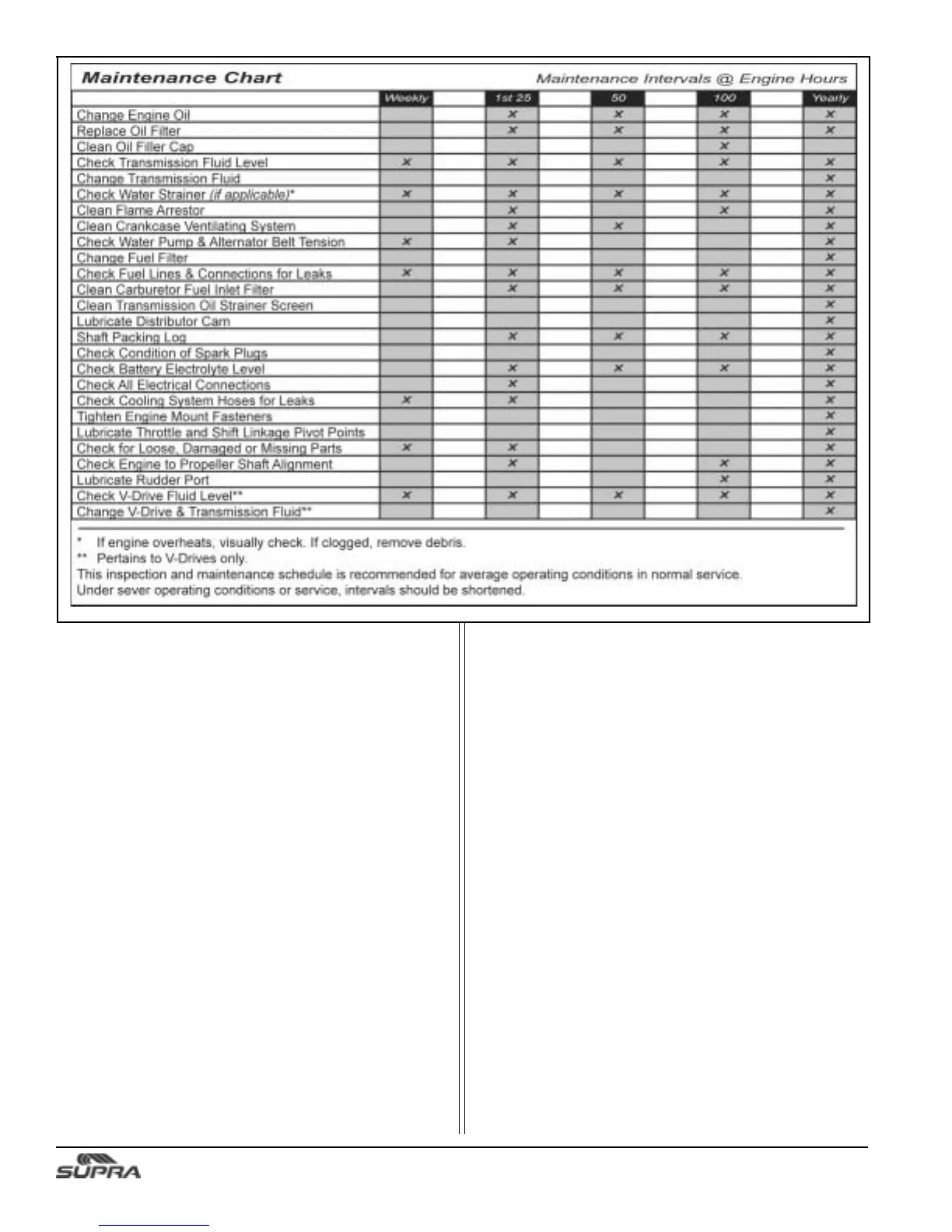 Lubricate rudder grease fitting located below the engine, once