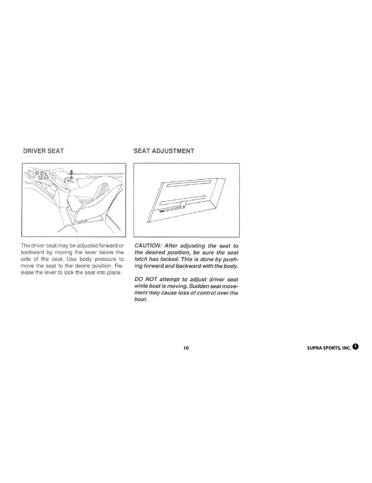Supra CONBRIO - SEATING AND INTERIOR FEATURES