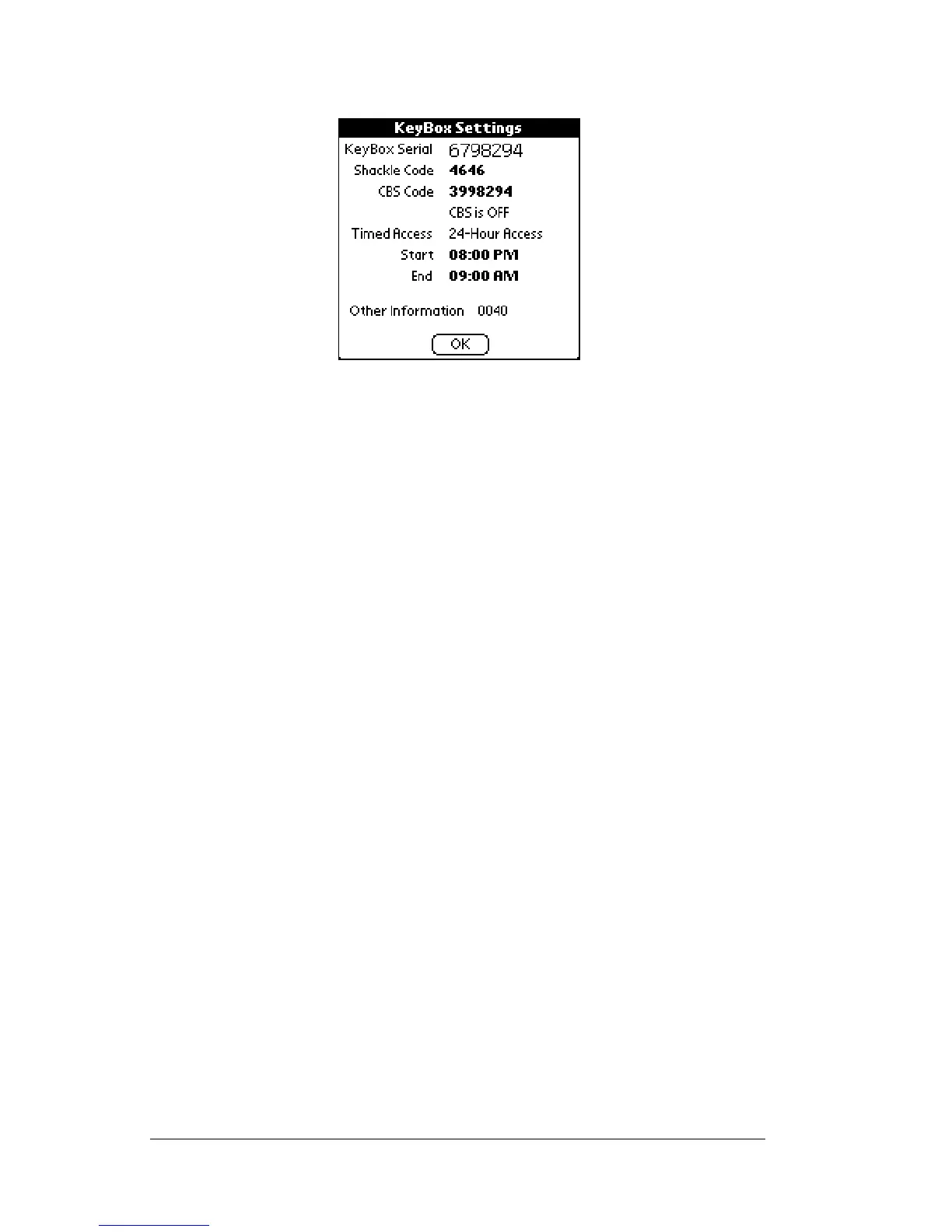 screen displays the settings for the KeyBox.