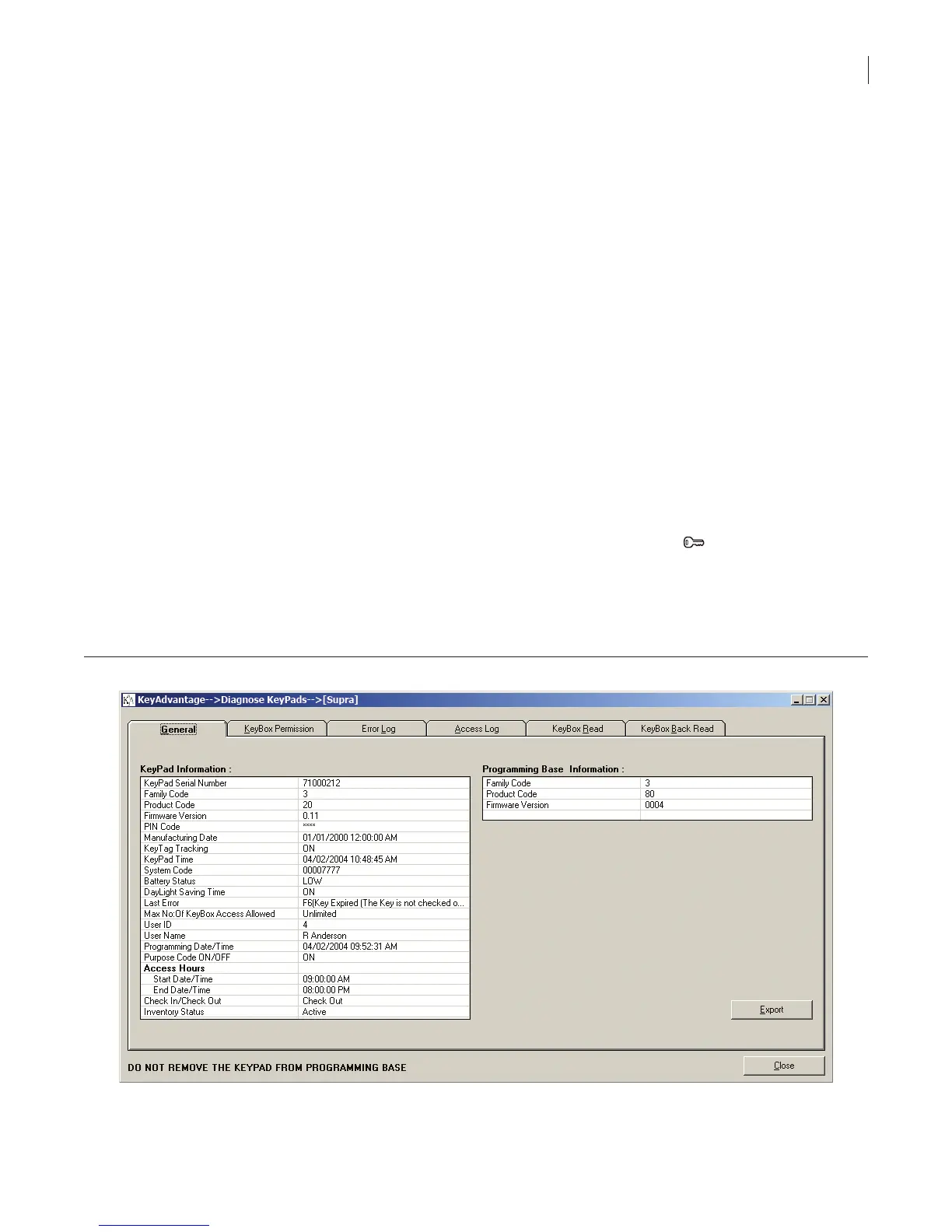 • The General tab (Figure 23) displays information on the KeyPad and the key holder if the KeyPad is