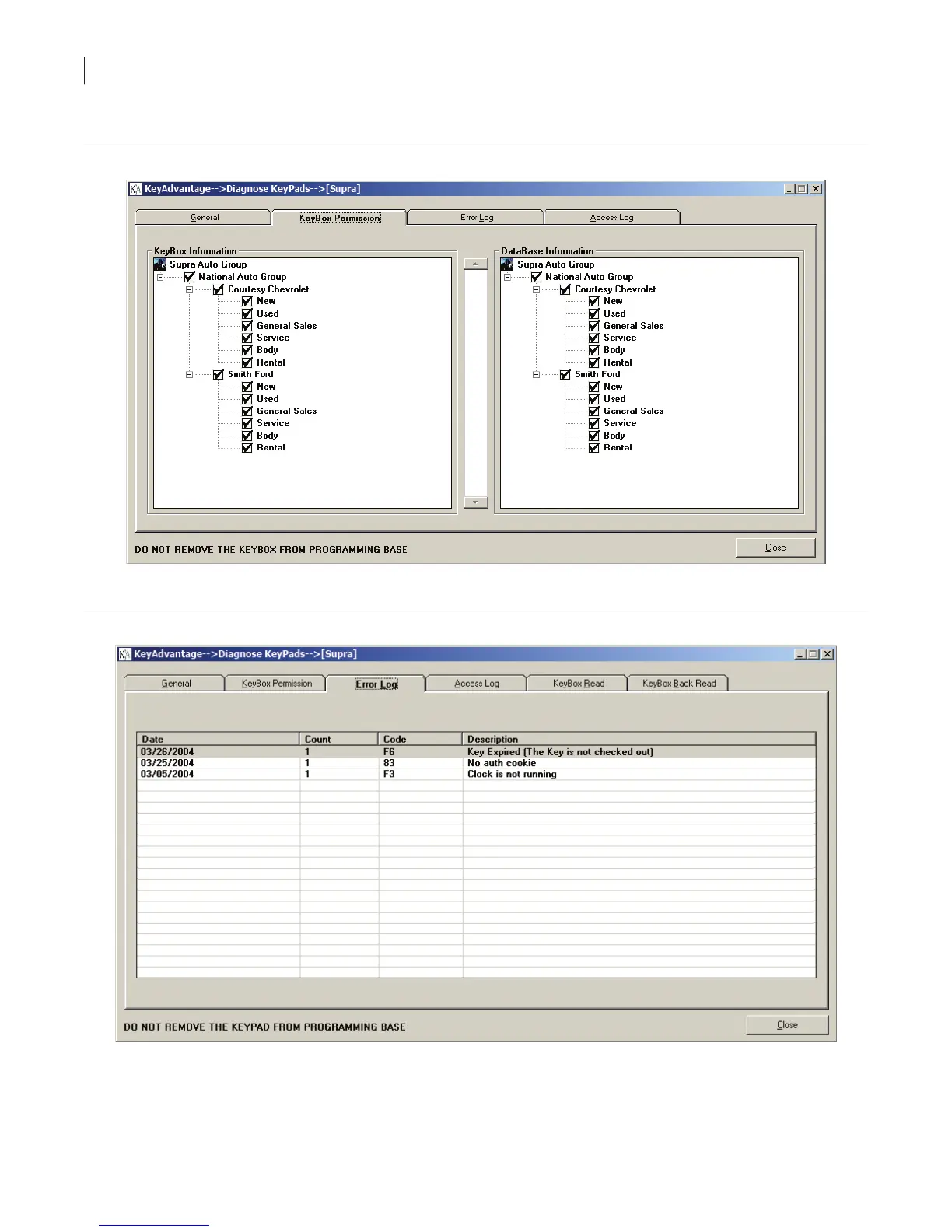 The KeyBox Permission tab (Figure 24) shows the dealerships and departments the KeyPad can access.