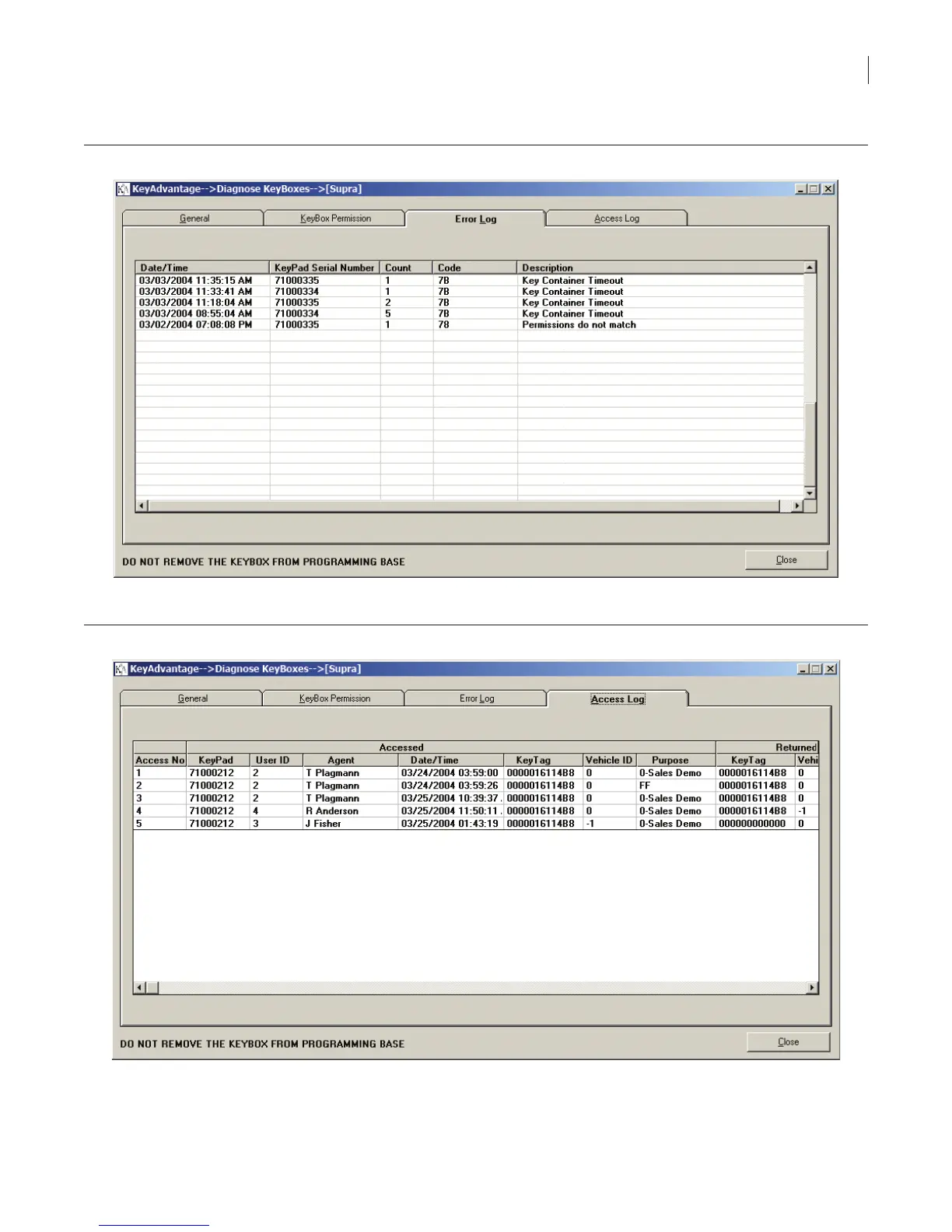 The Access Log tab (Figure 36) shows the KeyPad access information stored in the KeyBox.