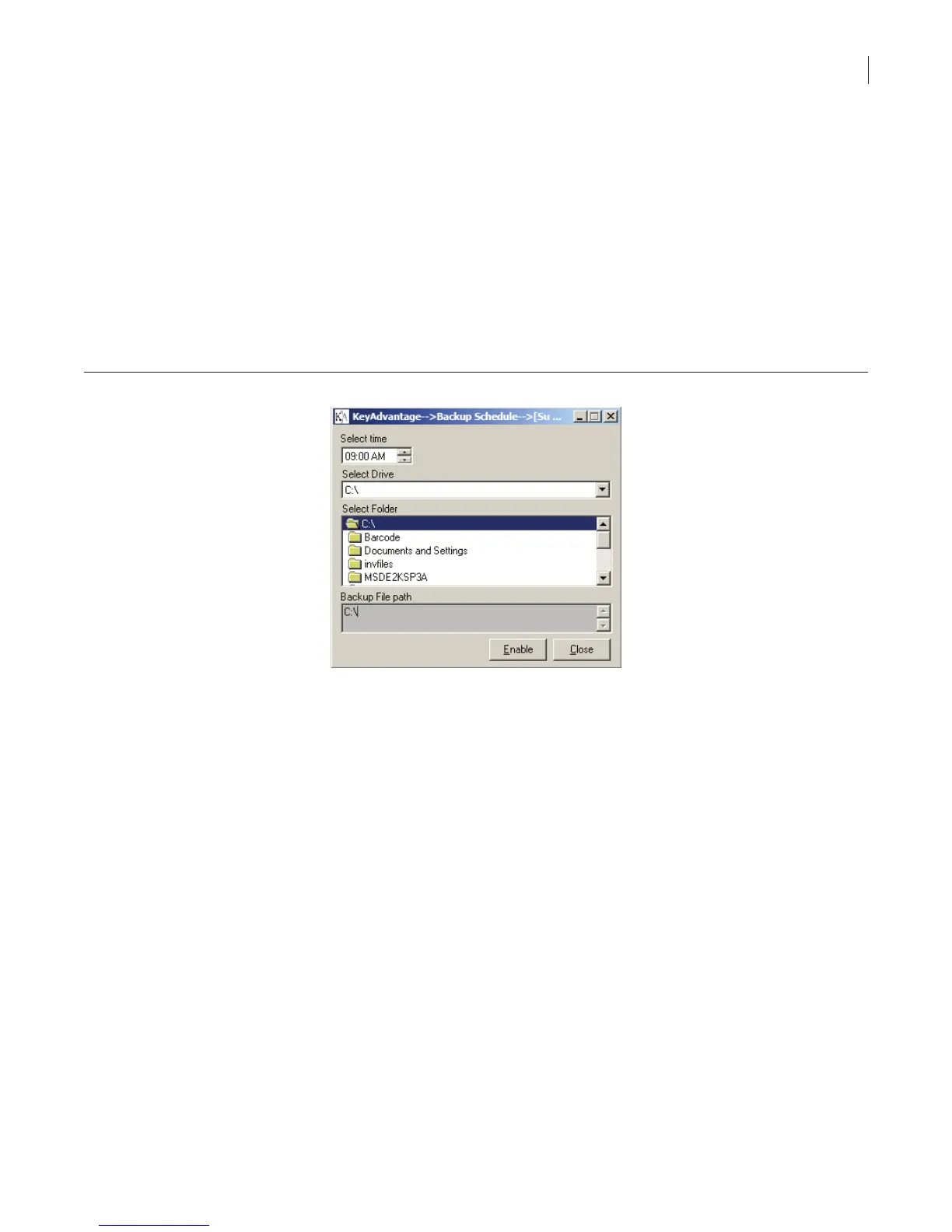 The KeyAdvantage software can back up the KeyAdvantage data les to either a local drive or a mapped network