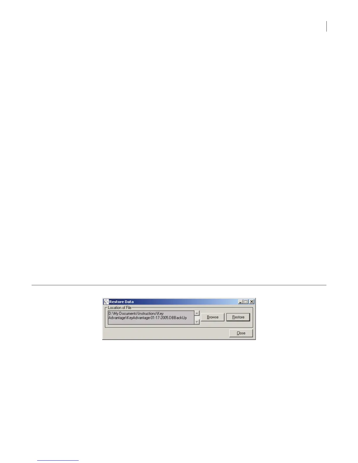 The KeyAdvantage software allows you to restore the database from a backup le. You must perform the
