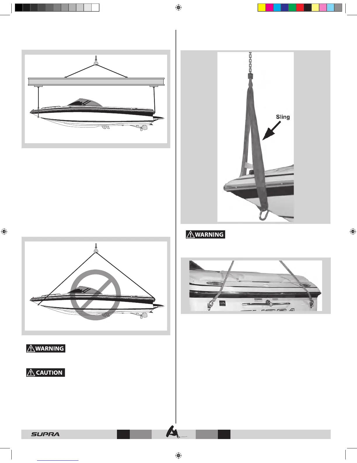 Never attempt to lift the boat by means of a cable sling from