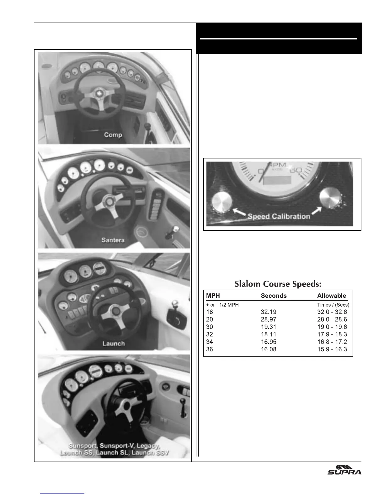 Supra Legacy - Section VII Instrument Panel; Speed Calibration; Instrument Panel & Controls