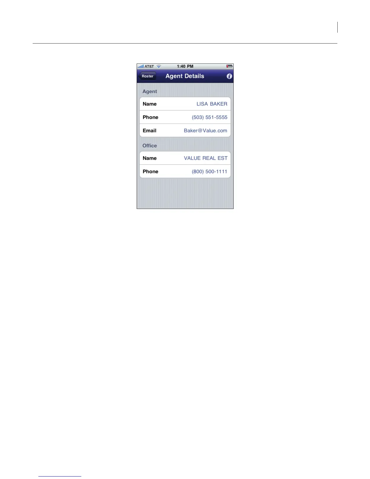 6. To contact the agent, select the phone number or email address shown.