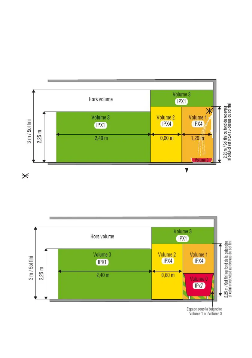 Les schémas des volumes de salle de bains ci-dessous ne sont fournis qu’à titre indicatif. Veuillez