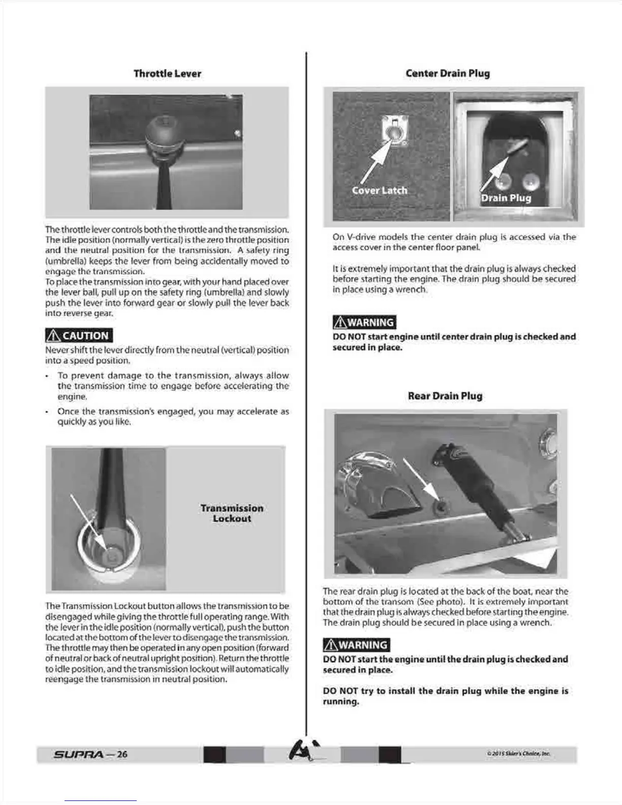 Supra SC - Throttle Lever and Drain Plug Checks