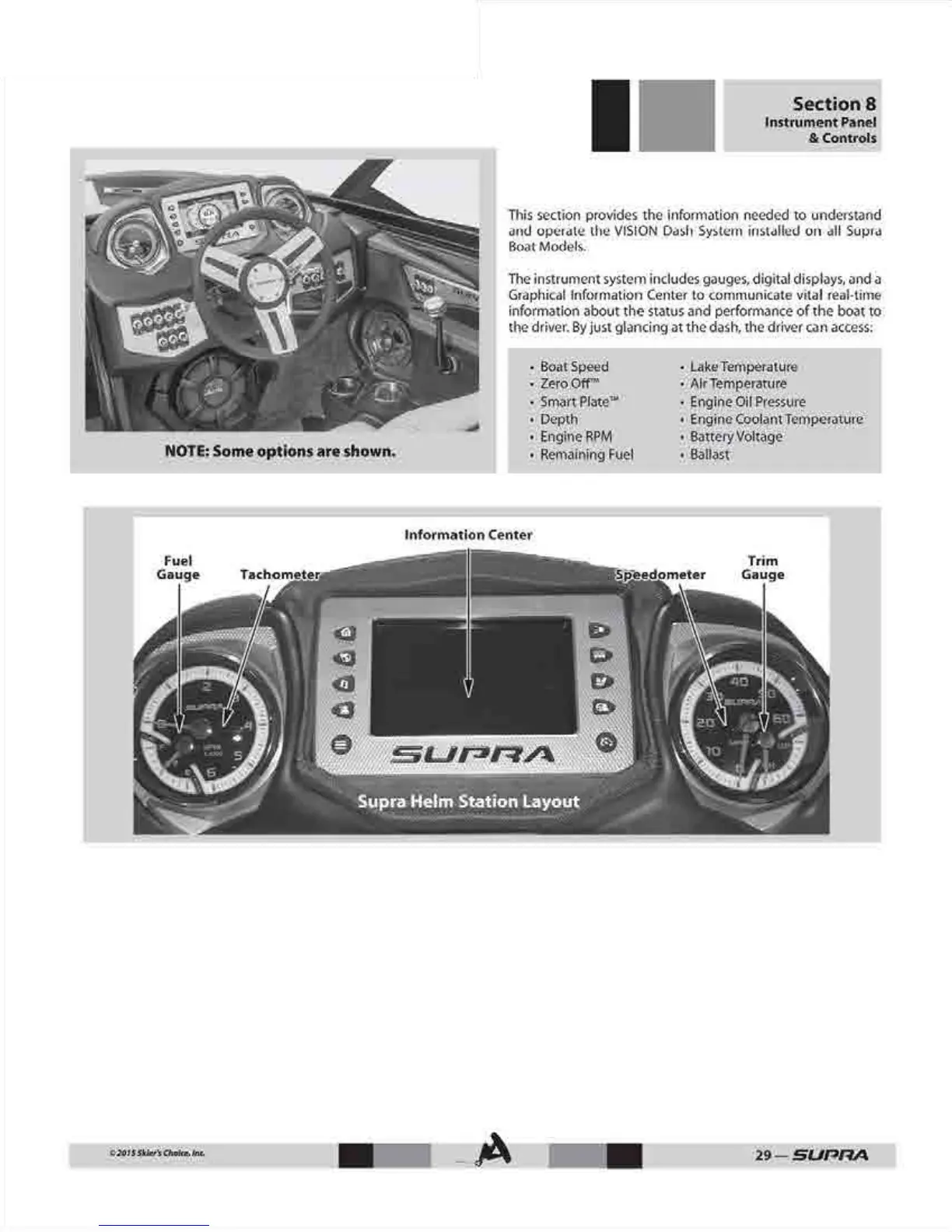 Supra SC - Instrument Panel & Controls; Helm Station Layout and Gauges