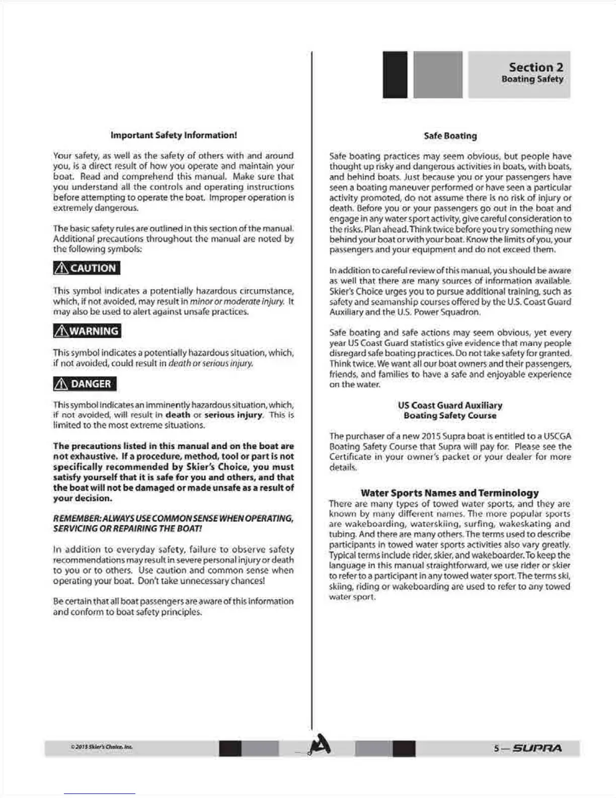 Supra SC - Boating Safety; Important Safety Information; Safe Boating Practices
