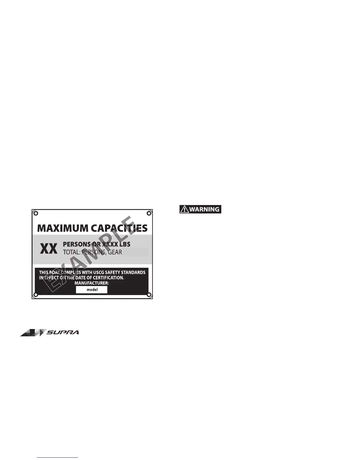 each Supra boat displays a maximum capacity sticker (see