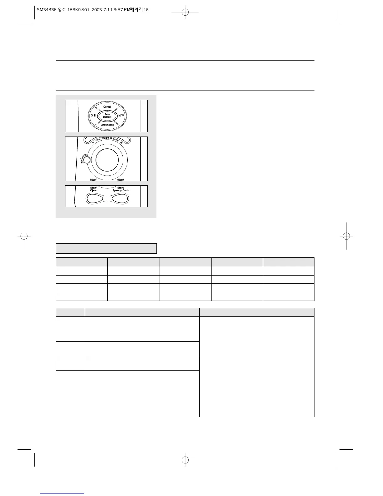 2. Select the defrosting menu by pressing the auto defrost button until the required