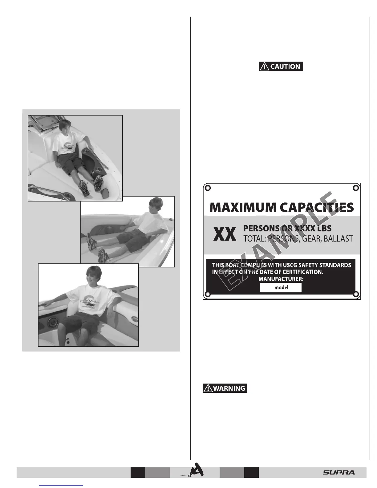 each Supra boat displays a maximum capacity sticker (see