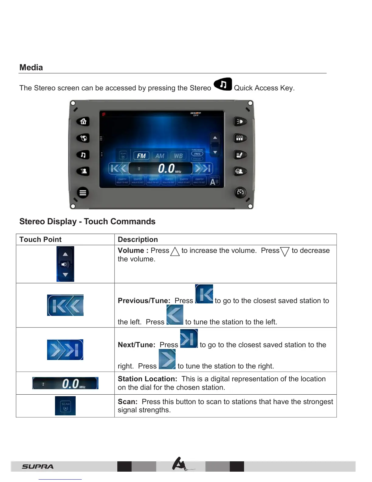 The Stereo screen can be accessed by pressing the Stereo Quick Access Key.