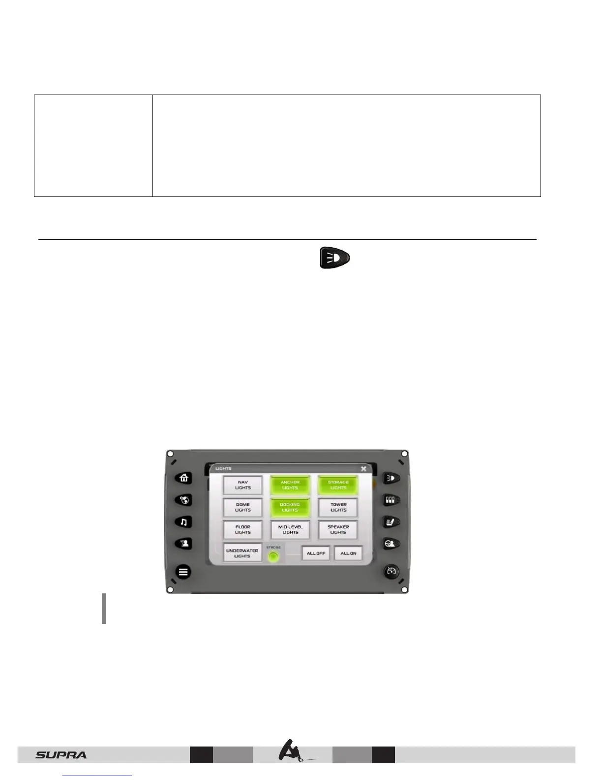 The Lights screen is accessed by pressing the Lights Quick Access Key. On this screen