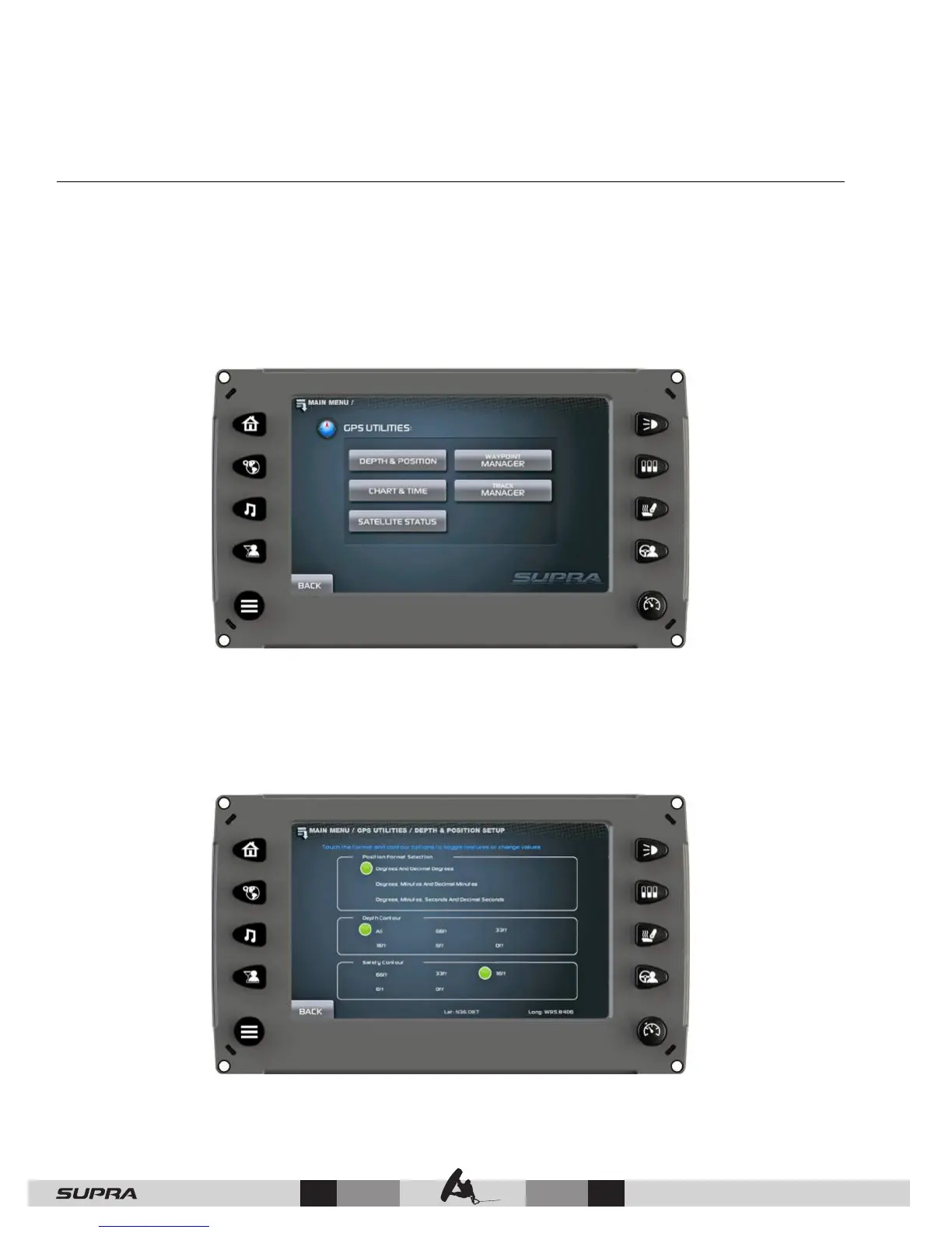 On the GPS Utilities screen, touch [Depth and Position] to access the Depth and Position