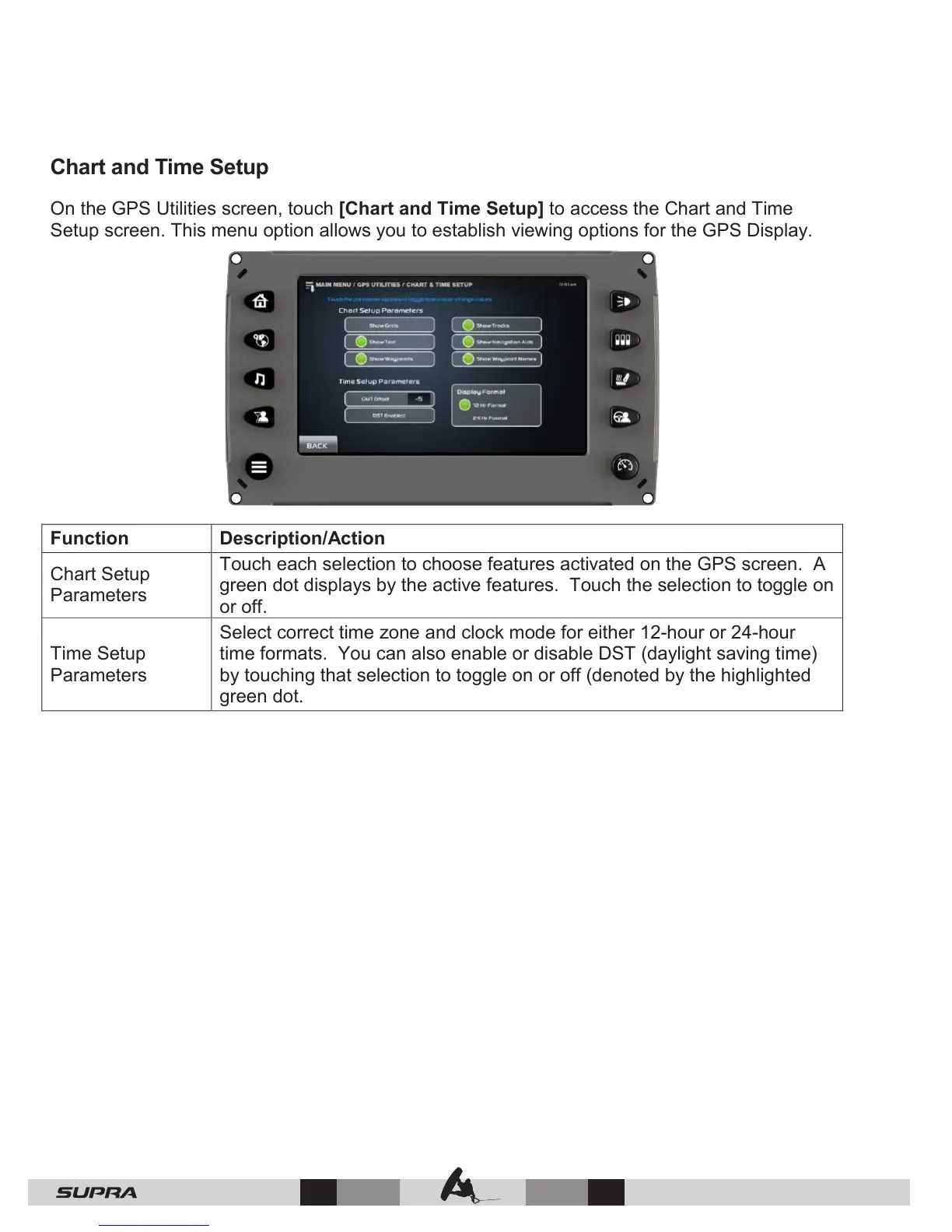 On the GPS Utilities screen, touch [Chart and Time Setup] to access the Chart and Time