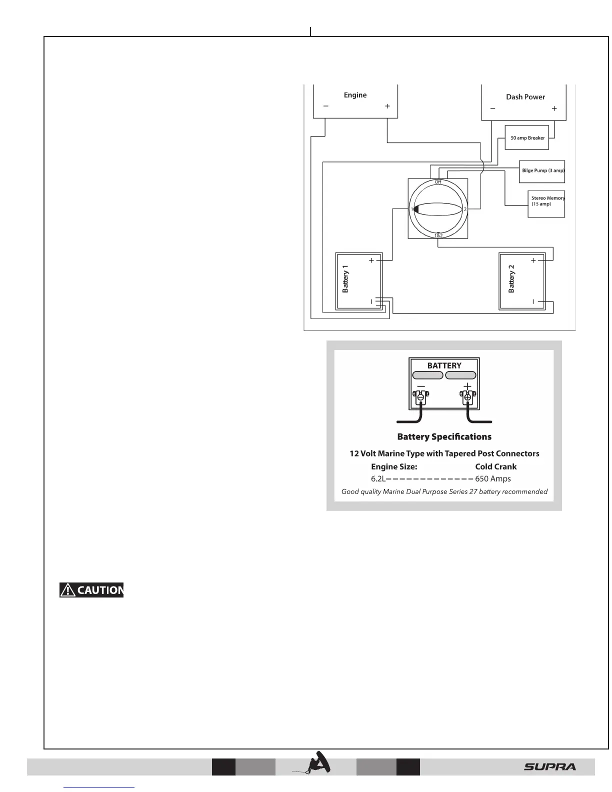 Battery switch position “1&2” is available but not recommended as power will be drawn from both batteries and the