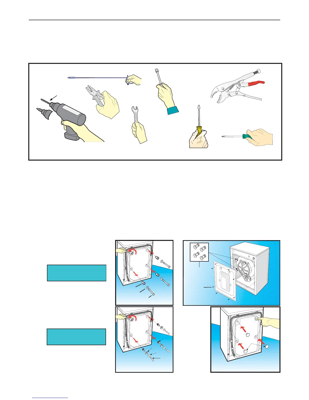 Important: If the spacers remain trapped inside the appliance, open the rear panel by removing the eight fixing screws