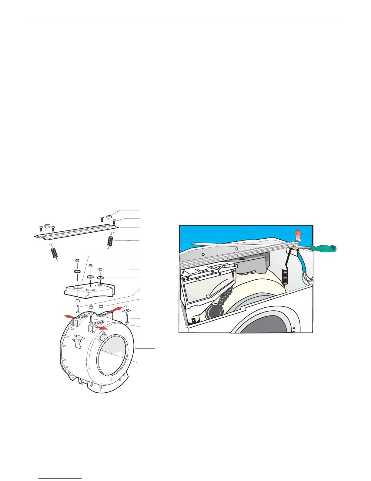 must be removed first. Lift the counterweight near to bolt (G063) at the front of the tub and remove