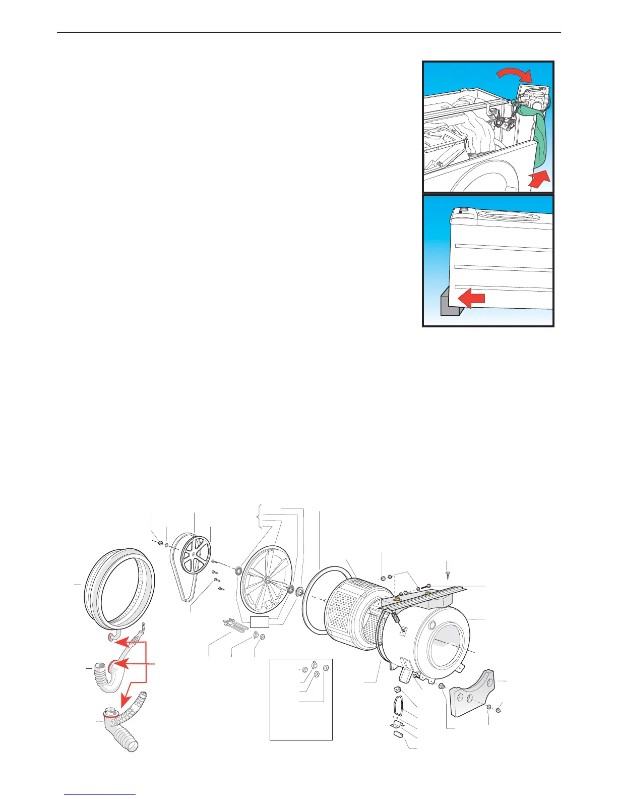 (l) Remove the tub back plate (G550) together with the drum assembly