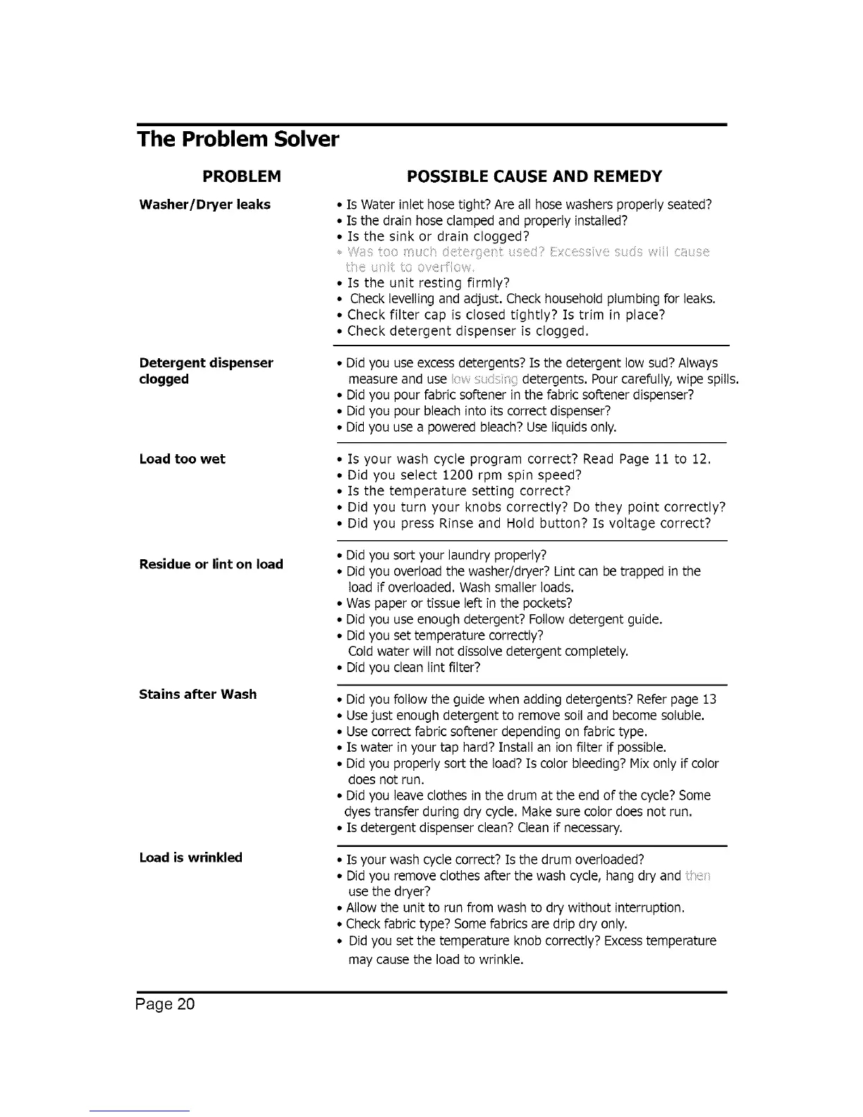 load if overloaded. Wash smaller loads.