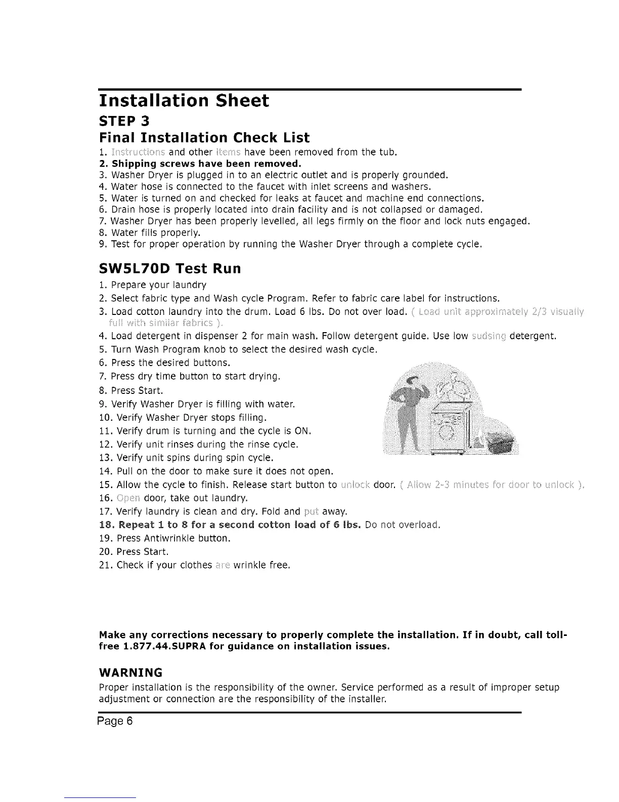 9. Test for proper operation by running the Washer Dryer through a complete cycle.
