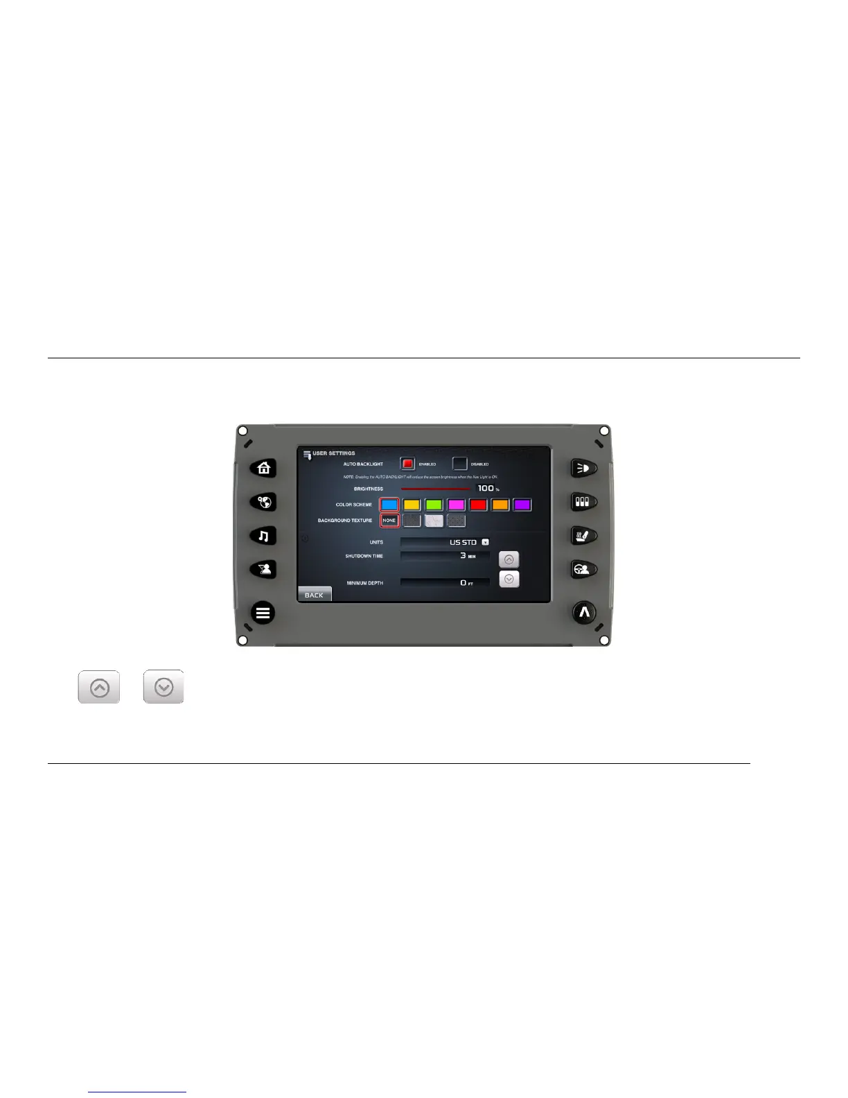 To edit the settings, touch the field to be changed. For Shutdown Time and Minimum Depth, touch