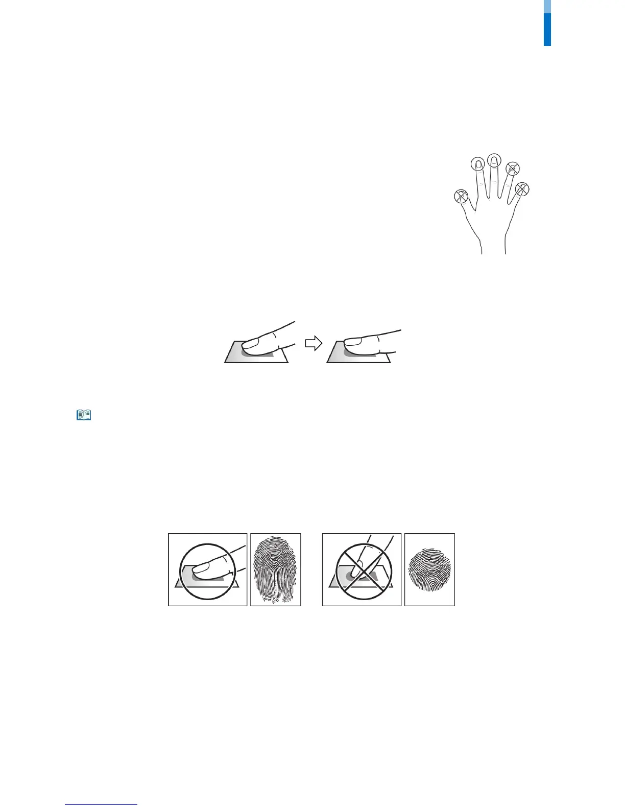 angle and position of a user's fingerprint input change. If you register the fingerprint with attention to the following matters, the